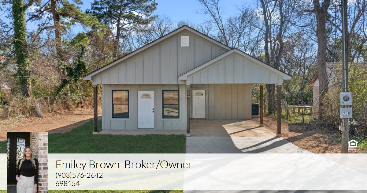Welcome to 358 Baughman Rd in Kilgore! This beautifully built new construction home offers modern style, smart design, andan unbeatable location. Featuring 3 bedrooms and 2 bathrooms, this 1,206 square foot home is thoughtfully designed to maximize every inch of space. The open-concept layout combined with a vaulted ceiling in the living room creates a bright, airy feel that makes the home live much larger than its footprint. Situated on a spacious 0.31-acre lot, the property is conveniently located directly across from Kilgore Primary School and Kilgore Middle School, perfect for easy access to schools. You’ll also love being just minutes from shopping, hospitals, the city walking trail, and the dog park. Inside, beautiful vinyl flooring flows throughout the home. The kitchen shines with gorgeous granite countertops, brand-new appliances, and a generous walk-in pantry, all overlooking the main living area, ideal for entertaining or everyday living. The primary suite offers a private retreat with a double-sink vanity, tile surround shower/tub combo, and a spacious walk-in closet that conveniently connects directly to the laundry room. Two additional bedrooms provide flexibility for guests, family, or a home office. Complete with a covered carport and a large yard with room to enjoy the outdoors, this home delivers comfort, convenience, and value. Great home.Great layout. Great price. Don’t miss it!